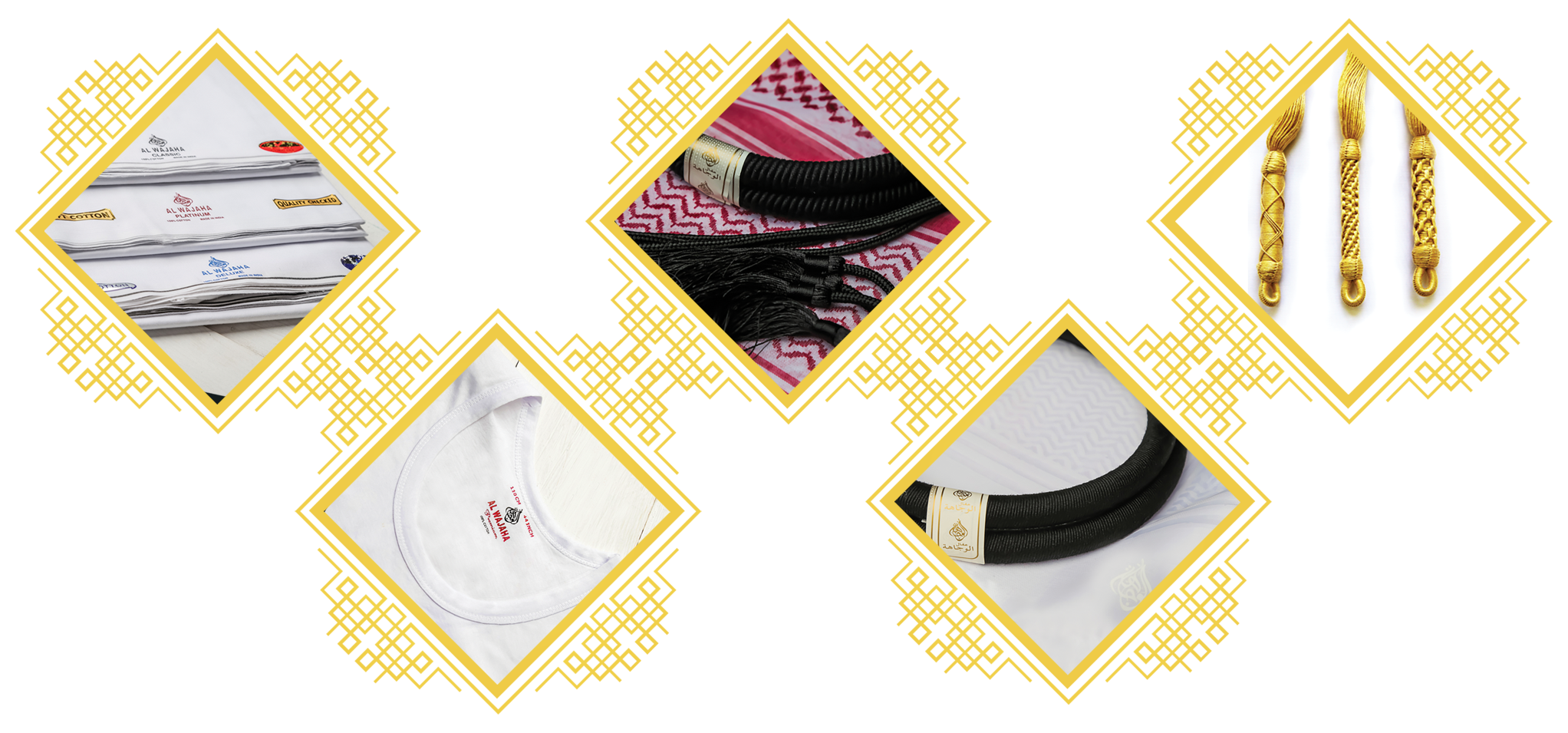 ما يميز الوجاهة هو استخدامنا لأرقى الخيوط والأقمشة التي يتم استيرادها من مختلف بقاع العالم والتي تتنوع بأوزانها وملمسها والوانها ، ولذلك الوجاهة دائماً يناسب جميع الأذواق والمواسم